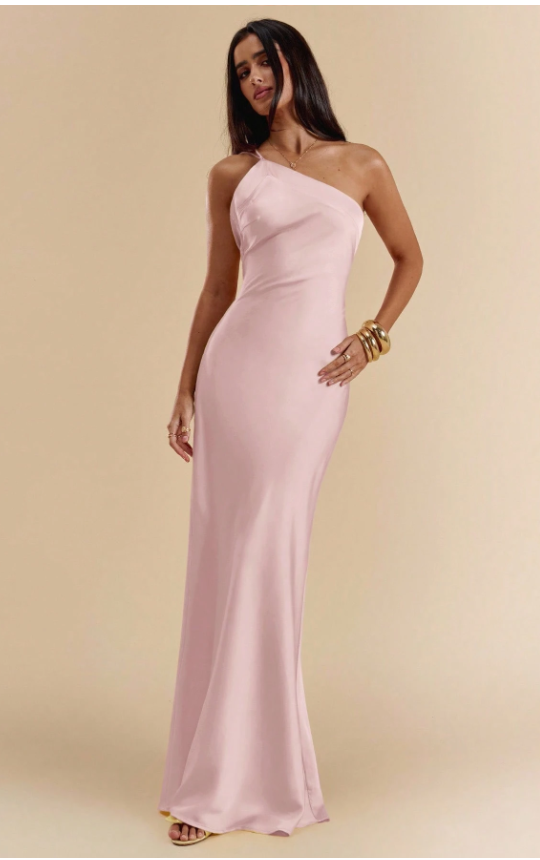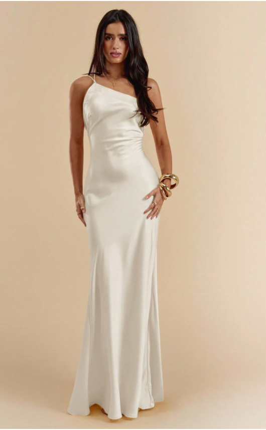 Beautiful one shoulder satin dress with Cowl tie back. Great for all occasions